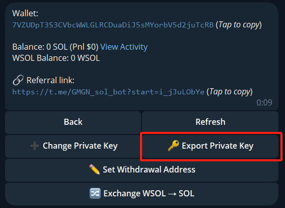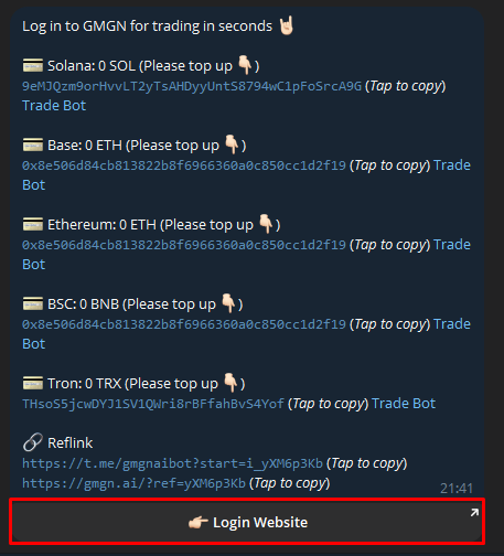 Open GMGN.AI Telegram Trading Bot in Telegram and send command /start.