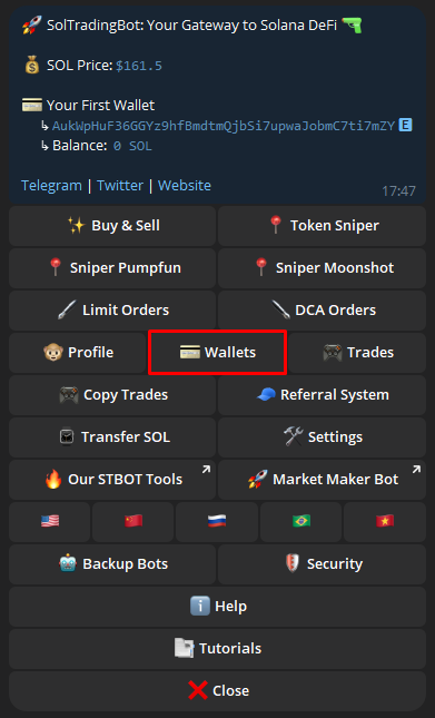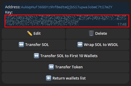 - Click on Add/Connect Wallet -> Import Private Key, and paste the private key you copied on the SOLTradingBot.